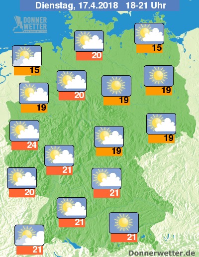 Heute Nachmittag ist es verbreitet heiter oder sonnig, im Südwesten sind hier und da einige Wolken möglich, dabei bleibt es aber trocken. Die Temperatur liegt bei 14 Grad in Cuxhaven und bis 22 Grad in Bonn.