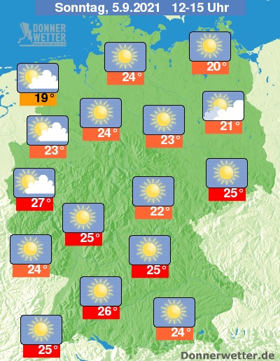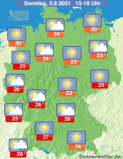 Auf schönstes Septemberwetter dürfen sich weite Landesteile auch in den Nachmittaggs- und Abendstunden freuen. Teils scheint die Sonne von einem wolkenlosen Himmel, teils ist es heiter oder nur leicht bewölkt. Bis auf ein geringes Schauerrisiko im äußersten Südwesten bleibt es dabei meist trocken.