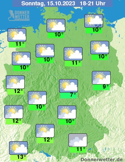 Heute Abend bilden sich im Norden noch gebietsweise Schauer, jedoch lockert es auch hier häufig auf. Im übrigen Land ist es teils heiter, teils aufgelockert bewölkt, dazu bleibt es trocken. Die Temperatur liegt bei 7 Grad in jena und 13 Grad in Freiburg.