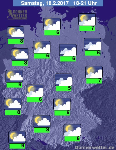 Heute Abend zeigt sich der Himmel auch über der Osthälfte des Landes zunehmend auch aufgelockert, oft jedoch noch stark bewölkt. Weiter nach Westen hin ist es zum Großteil leicht oder locker, vor allem im Nordwesten aber auch aufgelockert bewölkt. Es bleibt landesweit trocken bei Werten zwischen 5 und 9 Grad.