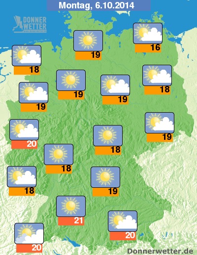 Am Montag starten wir gebietsweise noch mit Nebel oder Dunst in die Woche, sonst ist es aber verbreitet feundlich und die Sonne kann sich längere Zeit zeigen. Mehr Gewölk zieht einerseits vom Nordwesten, über den Westen bis nach Südwesten und anderseits auch im Nordosten des Landes durch, dabei bleibt es aber weitgehend trocken. Die Temperatur steigt auf 15 Grad auf Rügen und bis 21 Grad in Schwaben.