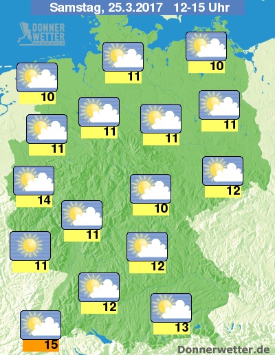 Heute Nachmittag gibt es zumeist ein Mix aus überwiegend lockeren Wolken und häufigem Sonnenschein. Im Nordosten können die Wolken jedoch gebietsweise dichter sein. Im Südwesten ist es verbreitet auch sonnig. Es bleibt landesweit trocken bei Werten zwischen 10 Grad in Vorpommern und etwa 15 Grad im Breisgau.