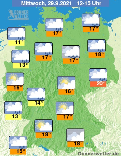 Heute Nachmittag ist es häufig stark bewölkt, dazwischen kann es aber auch hier und da auflockern, jedoch bilden sich gebietsweise Schauer. Die Temperatur liegt bei 11 Grad an der Nordsee und bis 20 Grad in der Lausitz.