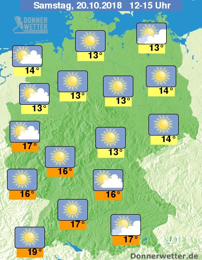 Heute Nachmittag zeigen sich über dem Norden zwar oft sonnige Abschnitte, gebietsweise ziehen hier aber auch dichtere Wolken durch, im übrigen Land ist es überwiegend heiter bis sonnig und nur hier und da ist es auch neblig-trüb bzw. mal stärker bewölkt. Es bleibt überall trocken bei 13 bis 19 Grad.