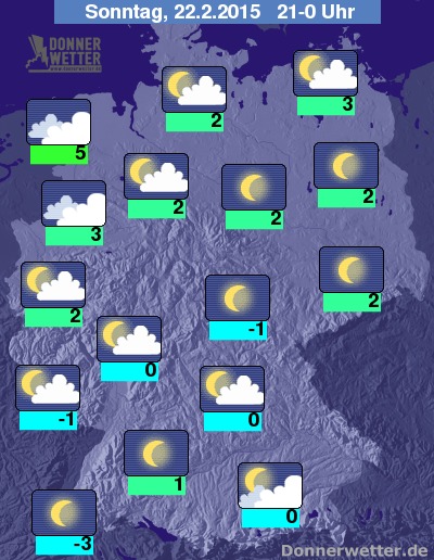 Heute Abend ist es im äußeren Südosten noch oft stark bewölkt, aber weitgehend trocken, sonst ist es verbreitet sternenklar oder nur locker bewölkt, von Nordwesten ziehen jedoch zunehmend dichte Wolken auf, die gegen Mitternacht im äußersten Nordwesten und Westen den ersten Regen bringen können, sonst bleibt es noch trocken. Die Abendtemperatur liegt bei 5 Grad an der niederländischen Grenze und bis -3 Grad im Markgräflerland.