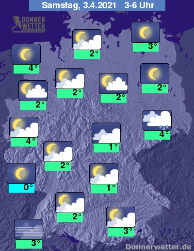In der Nacht zum Samstag ist Richtung Erzgebirge und Lausitz hier und da ein Regen- oder Schneeschauer möglich. Im übrigen Land ist es gebietsweise stark bewölkt, oft ist es aber auch nur locker bewölkt oder sternenklar, dazu bleibt es trocken. Die Temperatur sinkt auf 4 Grad in Dresden und bis 0 Grad in Saarbrücken.