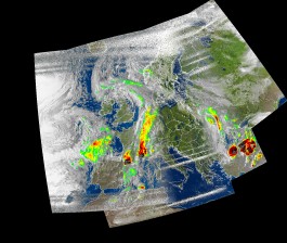 Regenwolken ziehen im Satellitenbild über Mitteleuropa hinweg.