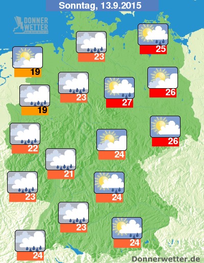 Am Sonntag ist es im Süden und Osten oft aufgelockert, teils auch stark bewölkt, aber größtenteils trocken. Im großen Rest der Republik ziehen hingegen meist dichte Wolken durch und Auflockerungen sind eher selten, dazu fällt immer wieder, teils kräftiger Regen, örtlich sind zudem Gewitter möglich. Die Temperatur steigt auf 19 Grad im Emsland und auf sommerlich warme 27 Grad in Magdeburg.