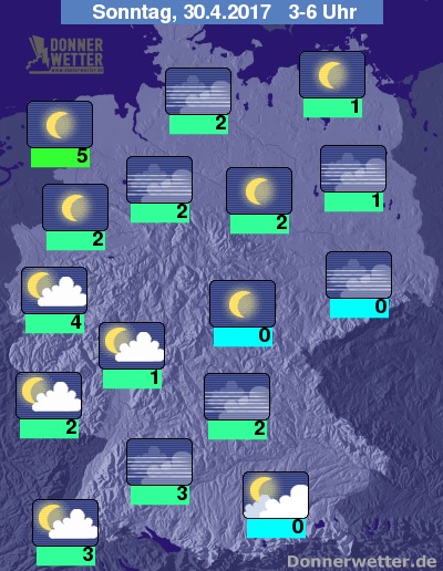 In der kommenden Nacht klart der Himmel über der Bundesrepublik verbreitet auf und allenfalls im Südwesten ziehen dann noch lockere Wolkenfelder durch, dazu bleibt es landesweit trocken. Die Temperatur sinkt dabei auf 5 Grad in Emden und auf Werte um 0 Grad im Vogtland.