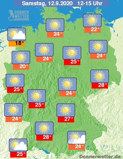 Heute Nachmittag erwartet uns verbreitet sonniges oder gering bewölktes Wetter. An den Küsten und an den Alpen ziehen gebietsweise lockere Wolken durch, dabei bleibt es trocken. Die Temperatur steigt auf teils nur 18 Grad in Nordseenähe und bis 28 Grad in der Lausitz.