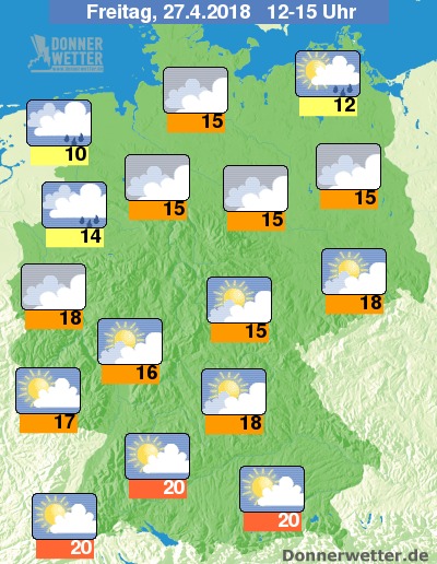Dazu klaffen große Temperaturdifferenzen zwischen Nord und Süd. An Nord- und Ostsee erreichen die Höchstwerte kaum mehr als 12 Grad, während das Thermometer an Rhein, Neckar und Donau auf bis zu 23 Grad klettert.