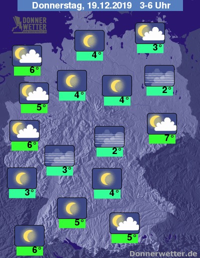 Die Temperaturen erreichen Werte um 2 Grad im Odenwald und 6 Grad an der Nordseeküste.