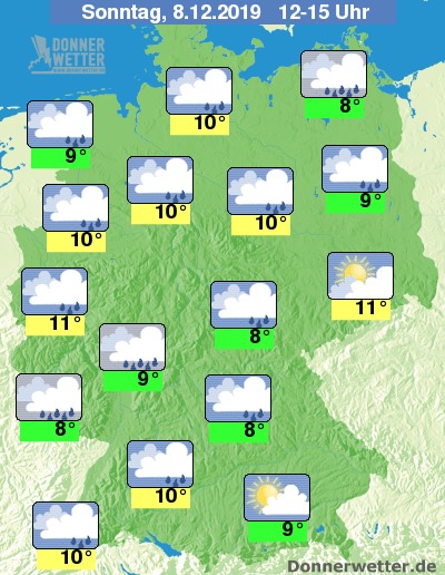 Die Temperaturen erreichen Werte um 8 Grad im Thüringer Wald und um 12 Grad im Rheinland.