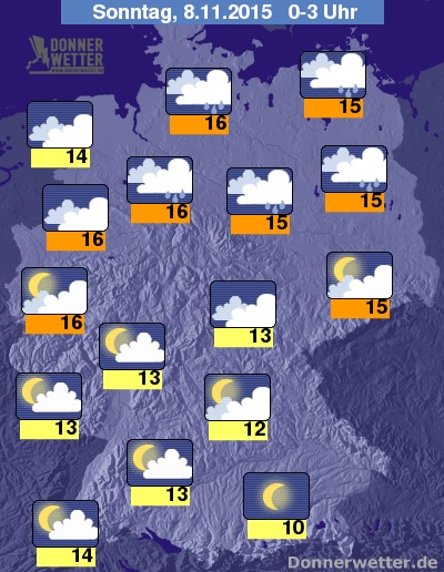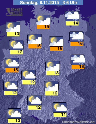 Der Sonntag startet weitestgehend freundlich. Nur im äußersten Nordosten können sich dichte Wolken noch ein wenig länger halten. Die Temperaturen liegen bei Werten um 10 bis 15 Grad C. Der wind flaut langsam ab.