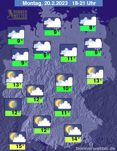 Heute Abend zieht es sich über der Nordhälfte Deutschlands weitgehend zu und es fällt auch gebietsweise Regen. Dagegen zeigt sich der Himmel über der Südhälfte der Republik locker bewölkt oder sogar sternenklar, hier bleibt es trocken. Die Temperatur liegt bei 8 Grad in Stralsund und bis 15 Grad in Freiburg.