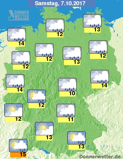 Der Samstag bringt dann verbreitet dichte Wolken und Regen, einzelne Lichtblicke und die ein oder andere längere Trockenphase sind südlich des Mains am wahrscheinlichsten.