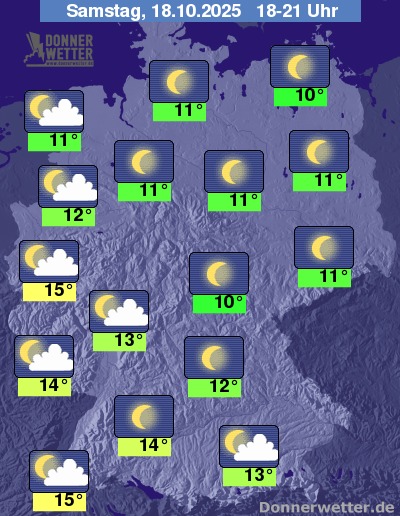 Heute Abend ist der Himmel verbreitet sternenklar, in den westlichen Landesteilen zieht eine oft leichte Bewölkung auf. Es bleibt trocken bei Werten von 10 Grad in Neubrandenburg und rund 15 Grad in Freiburg.