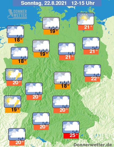 Heute Abend fällt besonders im Osten des Landes und am Alpenrand weiterhin teils kräftiger und gewittriger Regen, aber auch sonst sind bei teils dichten Quellwolken einzelne, teils kräftige und gewittrige Schauer möglich. Dazwischen kann sich aber auch die Sonne zeigen. Die Temperatur liegt bei 18 Grad an der Nordsee und bis 24 Grad in Berchtesgaden.