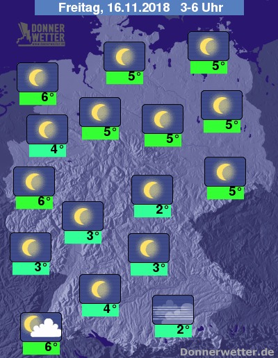 Während der zweiten Nachthälfte bleibt es teils sternenklar, teils neblig-trübe. Von Nebelnässen abgesehen bleibt es niederschlagsfrei.