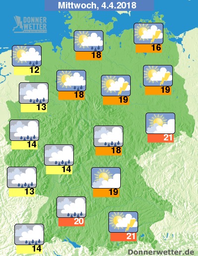 Eine erste intensive Front des Tiefs bei den Britischen Inseln überquert im Tagesverlauf Deutschland von Südwest nach Nordost und löst in der Landesmitte und im Osten auch örtliche Gewitter aus. Hinter ihr folgt etwas kühlere Luft. Bis Donnerstag wandert das Tief nach Skandinavien. Hinter seiner Kaltfront strömt dann nochmal kühle Luft in unser Land.