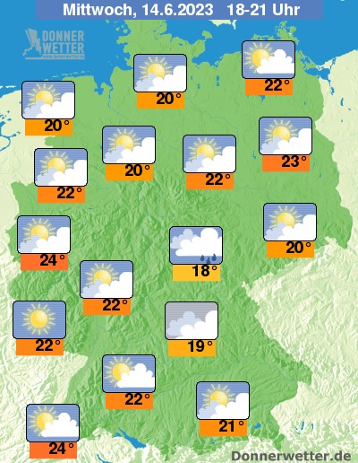 Heute Nachmittag zeigt sich das Wetter besonders im Osten und der Landesmitte oft stark bewölkt, dabei sind lokale Schauer möglich. Im übrigen Land ist es meist heiter bis sonnig, teils ziehen auch einige Wolken durch, dabei bleibt es trocken. Die Temperatur liegt bei 17 Grad am Thüringer Wald und bis 24 Grad im Rheinland.