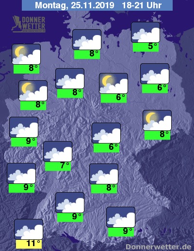 In den Abendstunden bleibt der Himmel über weiten Teilen des Landes bedeckt, regionale Auflockerungen beschränken sich in den kommenden Stunden meist nur auf den äußersten Westen sowie den Südosten Deutschlands. Mit Schauern muss am Abend aber nicht gerechnet werden.