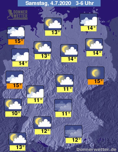 Während der zweiten Nachthälfte setzt vom Emsland ein. Sonst ziehen Wolken auf, die sich mit Mond und Sternen abwechseln. Längere Zeit klar bleibt es von Sachsen, über Bayern, bis nach Baden-Württemberg. Hier können sich jedoch stellenweise Nebelfelder bilden.