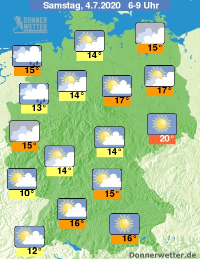 Der Samstag startet im Umfeld der Küsten sowie im Nordwesten mit dichten Wolken, von der Nordseeküste bis ins Münsterland kann es dabei auch etwas regnen. In den übrigen Landesteilen ist es überwiegend heiter oder locker bewölkt, über Teilen Sachsens und am Alpenrand ist es auch länger sonnig.