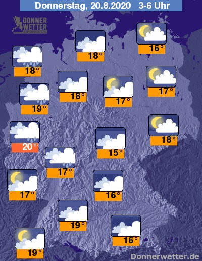 In der Nacht auf Donnerstag breiten sich die dichten Wolken weiter ostwärts aus. Bis zum frühen Morgen halten sich dann nur noch entlang der Oder lockere Wolkenfelder. Mit Schauern muss in den nächsten Stunden vor allem entlang des Rheins gerechnet werden, sonst bleibt es meist trocken.