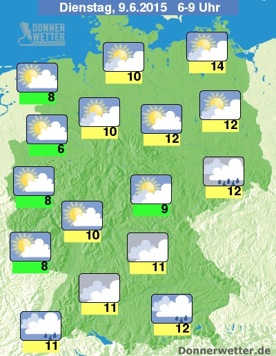 Die Temperaturen liegen am Morgen bei 6 Grad C im Münsterland und um 14 Grad an der Ostseeküste.