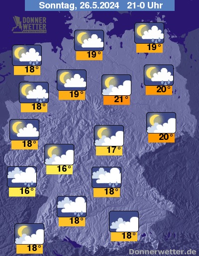 In der Nacht auf Montag ist der Himmel über der Nordhälfte überwiegend locker oder aufgelockert, im Süden auch stark bewölkt. Im Osten und Nordosten lassen die Niederschläge dabei nach, im Nordwesten und Südwesten ziehen aber bereits neue Regengebiete auf. In den übrigen Landesteilen ist es meist niederschlagsfrei.