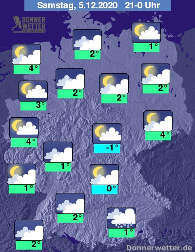 Die Temperaturen erreichen zunächst noch Werte um 2 bis 9 Grad, gehen am späten Abend dann auf Werte um 4 bis -1 Grad zurück.