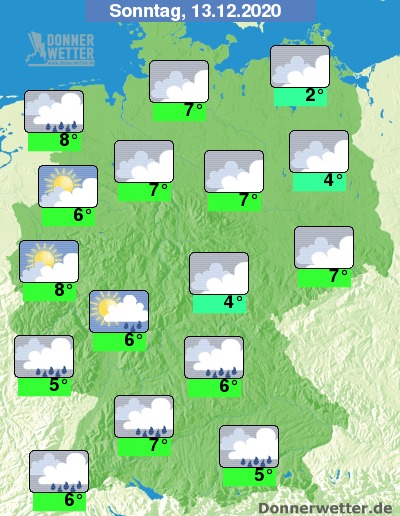 Am Sonntag ist es häufig stark, hier und da auch etwas aufgelockert bewölkt, im Süden fällt zudem gebietsweise, sonst nur selten Regen. Die Temperatur erreicht 2 Grad an der Müritz und bis 8 Grad in der Kölner Bucht.
