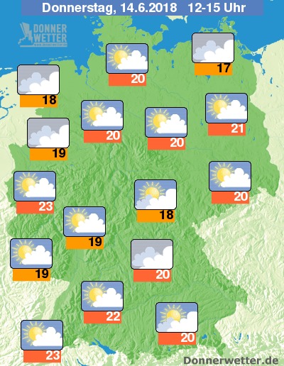 Ein Hoch über der Biskaya beschert uns am Mittag vor allem entlang der Elbe, des Rheins und der Donau reichlich Sonnenschein. In den restlichen Landesteilen und insbesondere in Richtung Nordsee sind die Wolken hingegen etwas dichter.