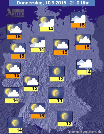Heute Abend zeigt sich der Himmel über der Südhälfte der Republik verbreitet locker bewölkt oder sternenklar. Im Norden und Osten ist es häufig locker bewölkt, gebietsweise ziehen aber auch mal dichtere Wolken durch, dabei ist im Osten regional etwas Regen möglich, sonst bleibt es aber trocken. Die Abendtemperatur liegt bei 16 Grad an der Nordsee und 12 Grad am Alpenrand.