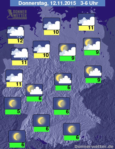 Die Nacht auf Donnerstag bringt nur selten Schauer, allein in Ostfriesland bis runter ins Münsterland können in den frühen Morgenstunden des Donnerstag einzelne Schauer fallen. In den mittleren und östlichen Landesteilen überwiegt wechselnde Bewölkung, im Süden klart der Himmel häufig auf.