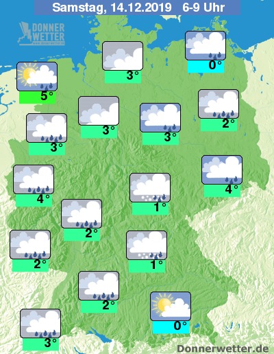 Der Samstag startet verbreitet stark bewölkt oder bedeckt, einzelne Lichtblicke gibt es in der Früh nur im äußersten Nordwesten sowie am Alpenrand. Verbreitet fällt am Samstagmorgen Regen, vor allem in den höheren Lagen der Mittelgebirge fallen die Niederschläge auch als Schneeregen oder Schnee. Örtlich besteht weiterhin Glättegefahr! Der Wind weht mäßig bis frisch, in Böen auch stürmisch aus West / Südwest.