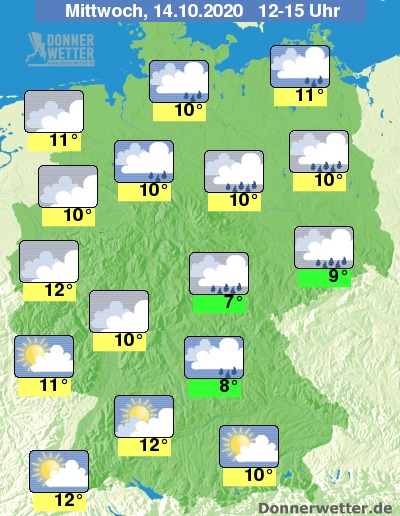 Am frühen Nachmittag fällt im Norden und Osten zeitweise Regen, in Sachsen, sowie in Teilen von Brandenburg regnet es auch ergiebig. Im Süden und Westen, sowie in Schleswig-Holstein bleibt es hingegen in der Regel trocken und von der Mosel bis zum Inn lässt sich gelegentlich auch mal die Sonne blicken.