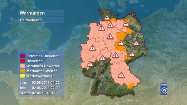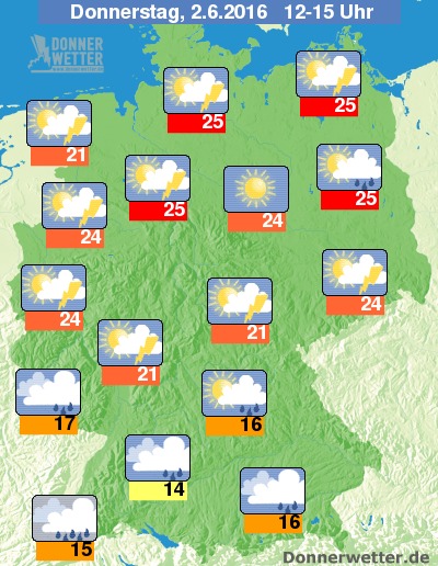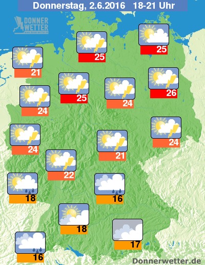 Heute Nachmittag bleibt es im Süden verbreitet bedeckt und dazu oft regnerisch. Weiter nach Norden hin wechseln sich Sonne und oft auch dichte Wolken einander ab und es bilden sich gebietsweise Schauer und zum Teil kräftige Gewitter. Die Temperatur steigt auf 16 Grad in Unterfranken und bis 26 Grad in Berlin.