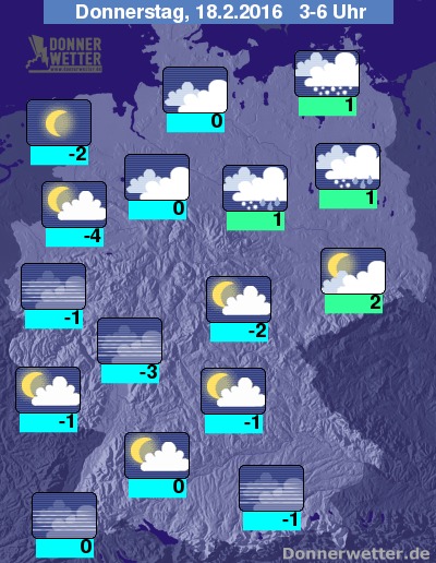 Die Südhälfte Deutschlands ist in der Nacht auf Donnerstag bedeckt. In den Regionen vond er Ostsee bis zum Erzgebirge ist weiterhin in der Nacht Schneefall angesagt. In Berlin nimmt der Schneeregen lässt der Schneefall nur wenig nach.