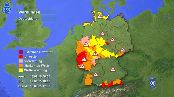 Heute Abend ist es vom Süden bis in den Osten Deutschlands oft nur gering oder locker bewölkt und dazu trocken. Über praktisch der gesamten Nordwesthälfte des Landes ziehen hingegen weitgehend dichte Wolken hinweg und es fällt zum Teil kräftiger, langanhaltender und auch ergiebiger Regen. Es besteht die Gefahr durch Aquaplaning und teils sehr schlechten Sichtverhältnissen.