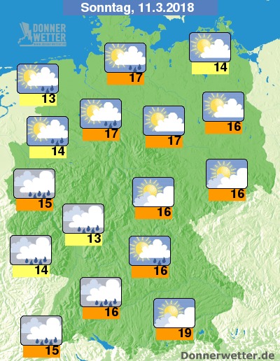 Heute bleibt es über der Osthälfte Deutschlands größtenteils heiter bis aufgelockert bewölkt und trocken. Weiter nach Westen hin fällt bei weitgehend dichter Bewölkung hingegen vielerorts Regen. Die Temperatur erreicht frühlingshafte Werte zwischen 13 Grad im nördlichen Emsland und etwa 19 Grad im Raum München.