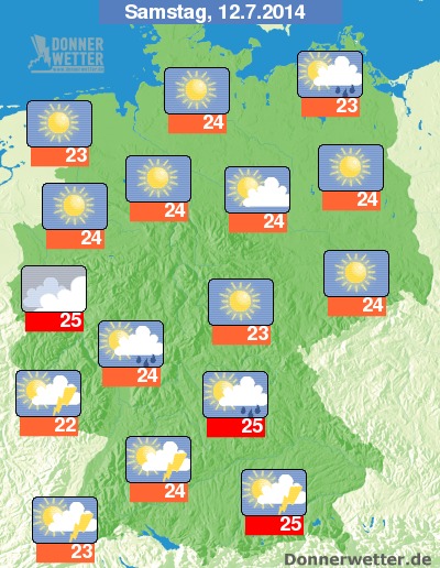 Verbreitet Sonne am Samstag, vor allem nach Süden Blitz und Donner