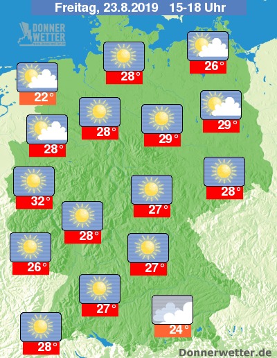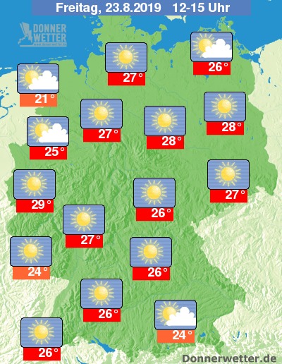 In den kommenden Stunden scheint die Sonne von einem überwiegend wolkenlosen Himmel, ein paar Wolken können sich am Nachmittag entlang der Küsten sowie am Alpenrand bilden. An den Alpen können die Wolken vor allem am späten Nachmittag auch mal dichter sein. Schauer sind am Freitagnachmittag aber bundesweit nicht zu erwarten.