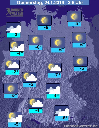 Während der zweiten Nachthälfte lösen sich die Wolken immer mehr auf und der Himmel präsentiert sich bis auf regionale Ausnahmen sternenklar oder nur leicht bewölkt.