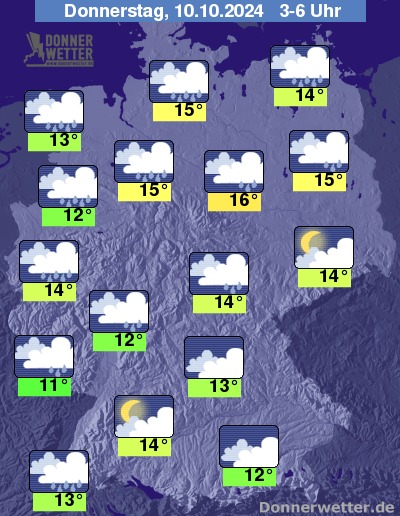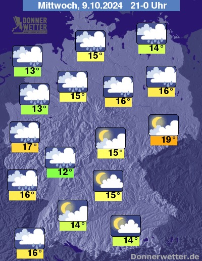 In der Nacht zum Donnerstag breiten sich von Westen und Südwesten teils kräftige und anhaltende Niederschläge nordwärts aus. Lokal besteht Unwettergefahr! Vom Süden bis nach Sachsen bleibt es bei wechselnder Bewölkung weitgehend trocken.