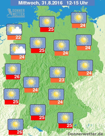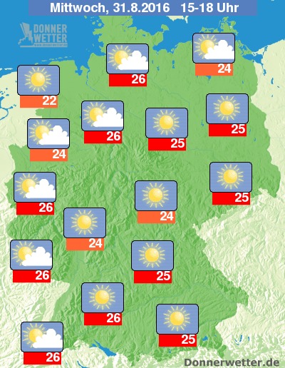 Höchstwerte um 26 Grad C am Mittwochnachmittag.