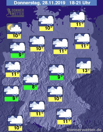 Am Abend halten sich meistens kompakte Wolken aus denen es zeitweise regnet. Lediglich im Nordseeumfeld funkeln zwischen den Schauern auch zwischendurch mal die Sterne.