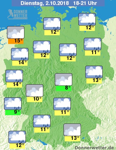 Am frühen Abend bleibt der Himmel deutschlandweit von einer grauen Wolkendecke überzogen, aus der es gebietsweise immer wieder mal tröpfelt oder nieselt. Im Norden kommt es auch zu Schauern. Die Temperaturen liegen zwischen 8 Grad in den Mittelgebirgen und 15 Grad im Emsland.