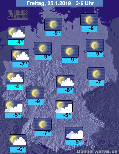 Tiefstwerte häufig im niedrigen einstelligen Minusbereich. So starten wir in den Freitag!